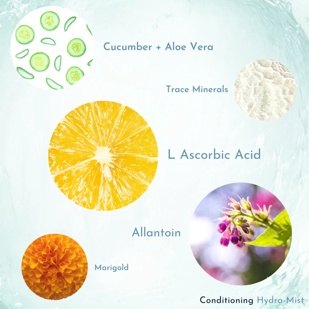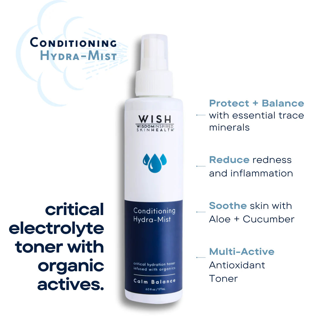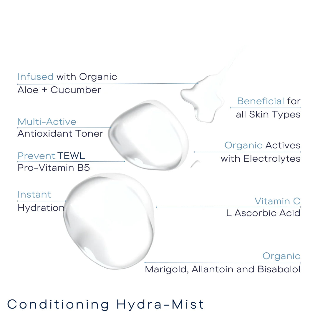 In addition to being ultra hydrating and soothing Conditioning Hydra-Mist is loaded with electrolytes, including high percentages of magnesium and potassium. This toning mist will help rebalance irritated and inflamed skin, maintain healthy barrier function, and add moisture back into an otherwise dry and dehydrated dermis.